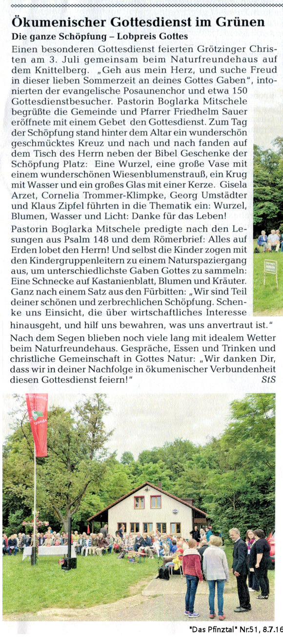Ökumenischer Gottesdienst beim Naturfreundehaus